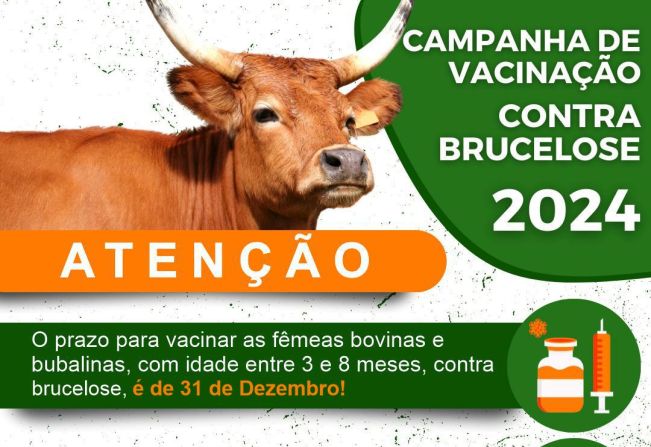 É hora de cuidar do rebanho! A Campanha de Vacinação contra Brucelose entra no 2º Semestre! O prazo para vacinar as fêmeas bovinas e bubalinas, com idade entre 3 e 8 meses, é até 31 de Dezembro e a atualização de saldos de todo o rebanho é até 31 de Dezembro, no sistema do Gedave.- www.gedave.sp.gov.br.