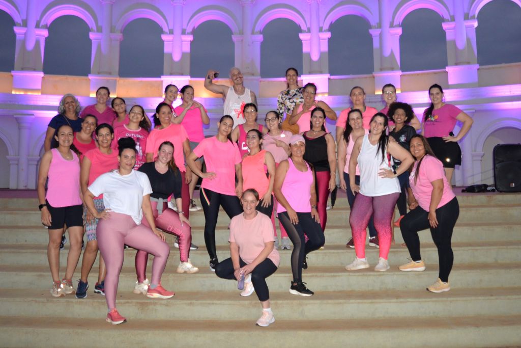 A Prefeitura Municipal, através das Secretarias Municipais de Saúde e de Turismo e Esportes, realizou, na noite de quarta-feira, (08) uma aula de zumba especial em comemoração ao outubro rosa, mês de conscientização sobre o câncer de mama.