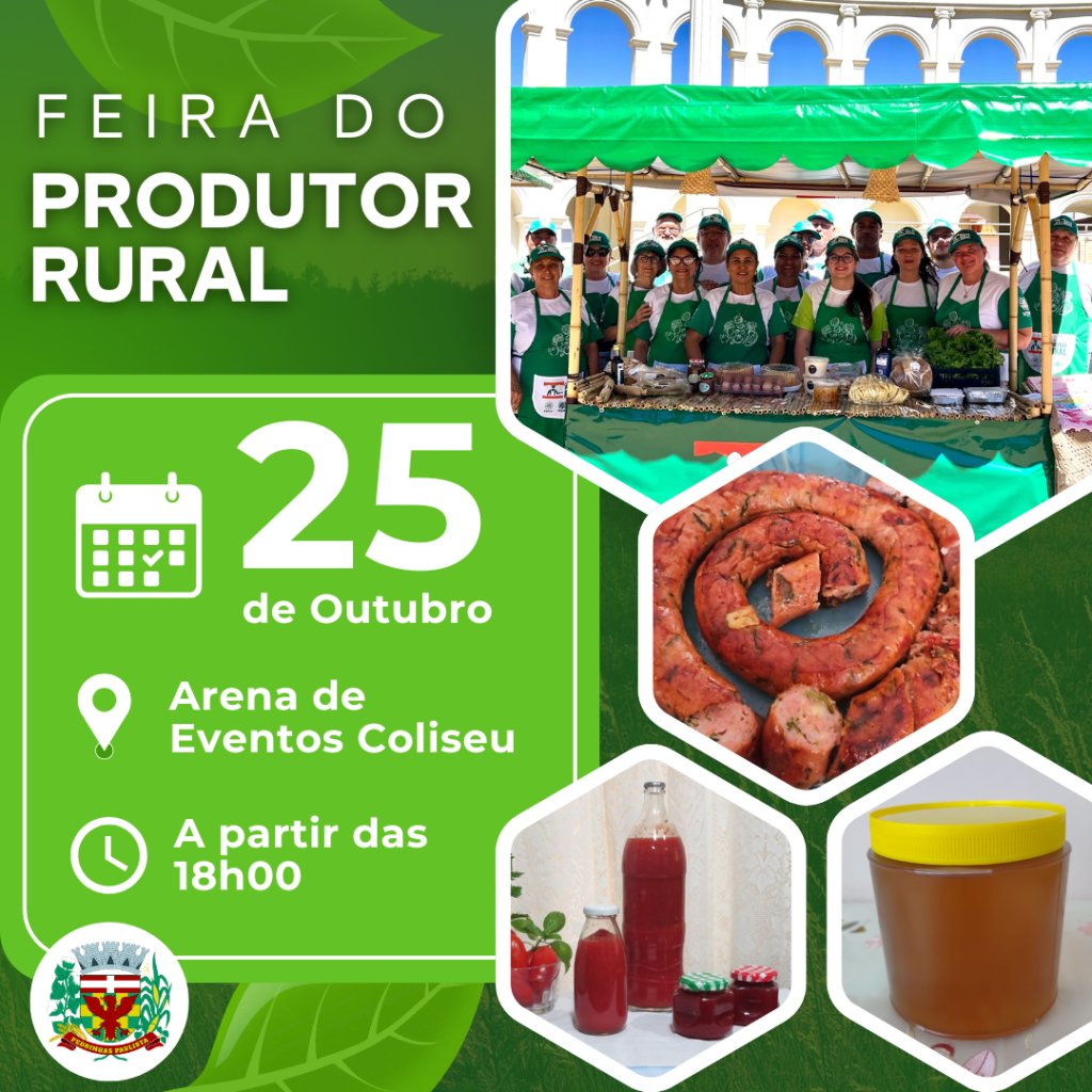 A 1º Feira do Produtor Rural de Pedrinhas Paulista terá início no próximo dia 25 de outubro (sábado), a partir das 18h, na Arena Coliseu.