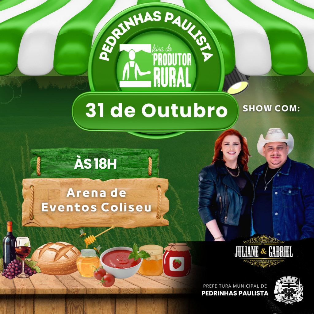A 2º Feira do Produtor Rural de Pedrinhas Paulista acontece na próxima sexta-feira, dia 31 de outubro, a partir das 18h, na Arena Coliseu.